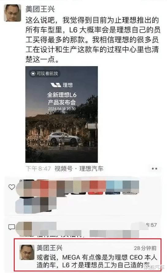 当然,不仅很多网友对理想MEGA不满意,就连理想汽车的投资人——美团王兴也有一些意见,他曾在朋友圈称:“MEGA 有点像是为理想 CEO 本人造的车,L6 才是理想员工为自己造的车。”